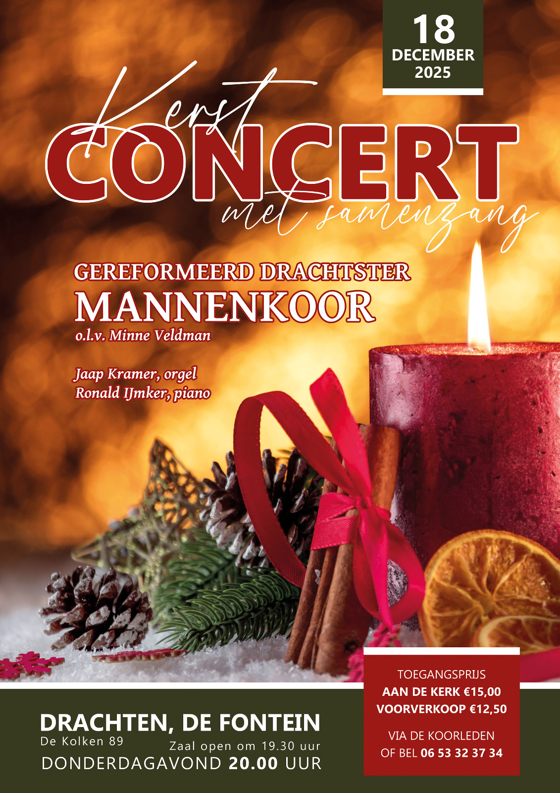 Kerstconcert in NGK De Fontein te Drachten (Kolken 89). Aanvang: 20:00 uur.