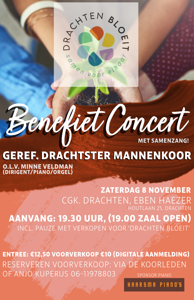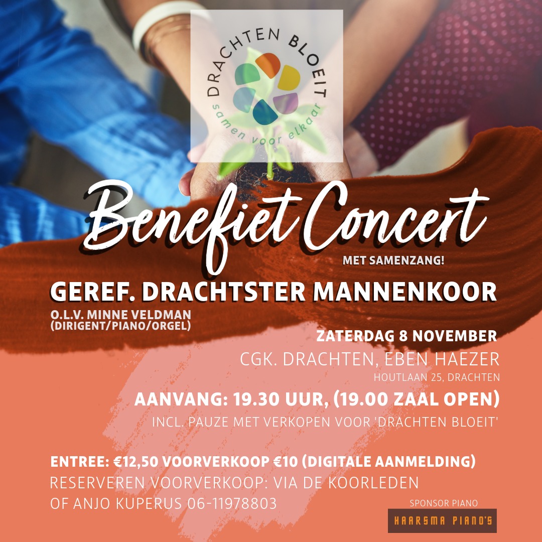 Zaterdag 8 november bent u van harte welkom bij ons Benefietconcert in CGK Eben Haëzer te Drachten (Houtlaan 25). Aanvang: 19:30 uur.